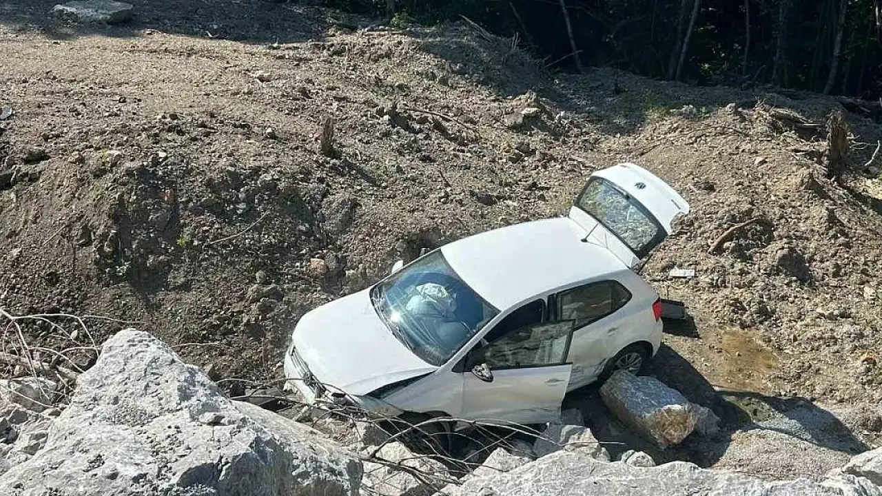 Şarampole uçan otomobilin sürücüsü yaralandı