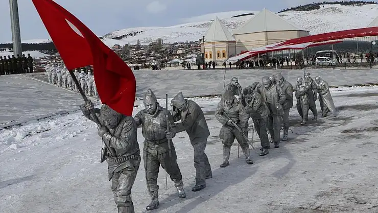 Ay-yıldızlı tören alanındaki etkinlikler, çelenk konulması, saygı duruşu ve İstiklal Marşı'nın okunmasıyla başladı. Tören alanında İzmir Soğuk Heykel Atölyesi tarafından soğuk heykel performansı gerçekleştirildi. Sarıkamış Harekatı'na katılan askerlerin kıyafetleriyle törende yer alan Sarıkamış 9'uncu Komando Tugay Komutanlığı'na bağlı askerler, alandaki dev Türk bayrağının altında nöbet tuttu. CHP Genel Başkanı Özgür Özel, Aile ve Sosyal Hizmetler Bakanı Mahinur Özdemir Göktaş, Milli Savunma Bakanı Yaşar Güler, Gençlik ve Spor Bakanı Osman Aşkın Bak ile çok sayıda katılımcının yer aldığı törende Sarıkamış Harekatı anlatıldı