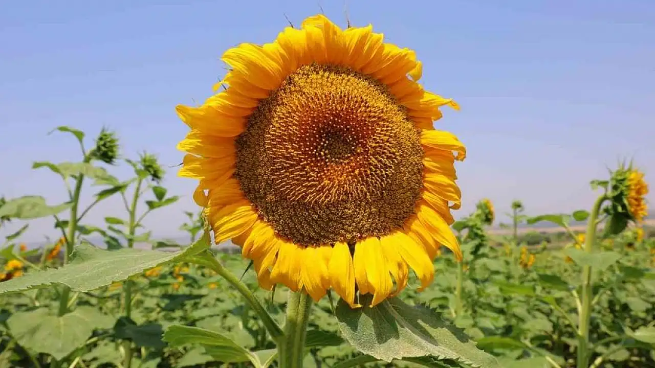 Kahramanmaraş'ta açan ayçiçekleri, doğaseverler ve fotoğraf tutkunları için görsel bir şölen sunuyor.Sarıya bürünen tarlalar, gün doğumu ve batımında kartpostallık manzara sunuyor.