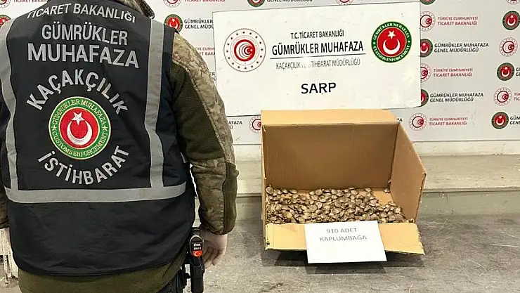 Sarp Gümrük Muhafaza Kaçakçılık ve İstihbarat Müdürlüğü ekiplerince gerçekleştirilen detaylı aramalarda değeri 655 milyon Türk lirası olan 910 adet su kaplumbağası yurda yasa dışı yollardan sokulmaya çalışılırken ele geçirildi.