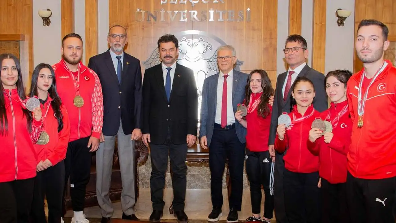 Uluslararası yarışmalarda elde ettikleri büyük başarılarla Türkiye'ye gurur yaşatan Selçuk Üniversitesi Spor Bilimleri Fakültesi öğrencileri, Rektör Prof.Dr.