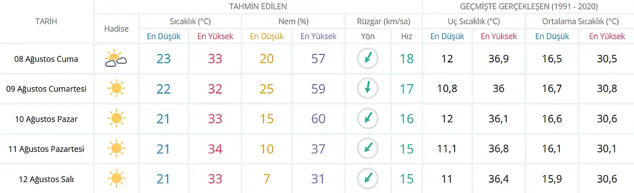 Yapılan son tahminlere göre Konya merkezde en düşük ve en yüksek sıcaklık dereceleri ise şöyle olacak: