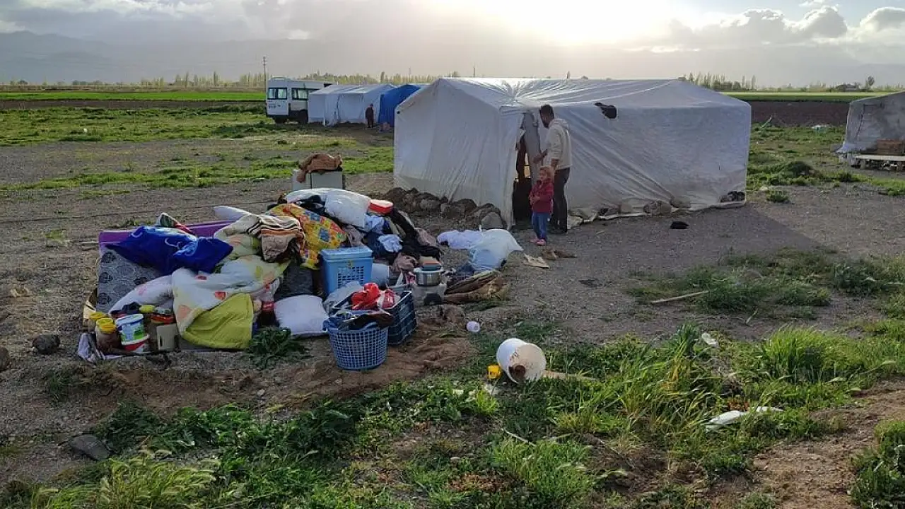 AA'nın haberine göre: Gökhüyük Mahallesi'nde yaklaşık 60 kişinin kaldığı çadırlardan 5'i şiddetli rüzgardan dağıldı.Tarım işçilerinden Meryem Donatimur (50), fırtınadan çadırlarının zarar gördüğünü belirterek, 'Ne çadır kadı ne de eşya.