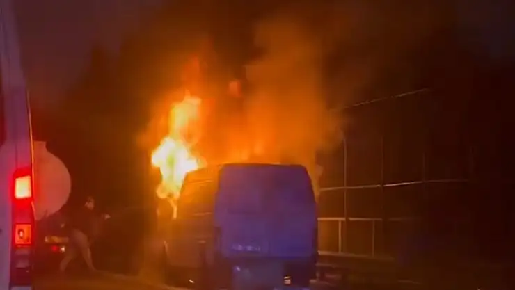 Yangın, saat 19.00 sıralarında TEM Otoyolu Beşiktaş Mevkii'nde çıktı. Edinilen bilgiye göre Esat Y. idaresindeki seyir halindeki minibüsün elektrik aksamında bilinmeyen bir nedenle arıza meydana geldi. Arızanın ardından motor kısmından yükselen alevler kısa sürede büyüyerek minibüsün ön kısmını sardı. Çevredekilerin ihbarı üzerine bölgeye itfaiye, acil sağlık ve polis ekipleri geldi. Alevler itfaiye ekiplerinin müdahalesiyle söndürüldü. Sağlık ekiplerinin kontrollerinde yangında yaralanan kimsenin olmadığı belirlendi. Yangın nedeniyle otoyolda trafik akışı kısa süreliğine kontrollü olarak sağlandı. Minibüsün yandığı anlar çevredeki kişiler tarafından cep telefonu kamerasıyla görüntülendi.
