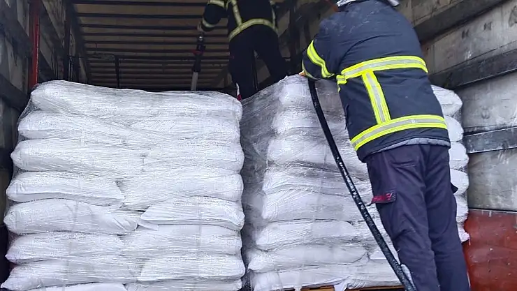 Seyir halindeki soya yüklü tırda yangın çıktı