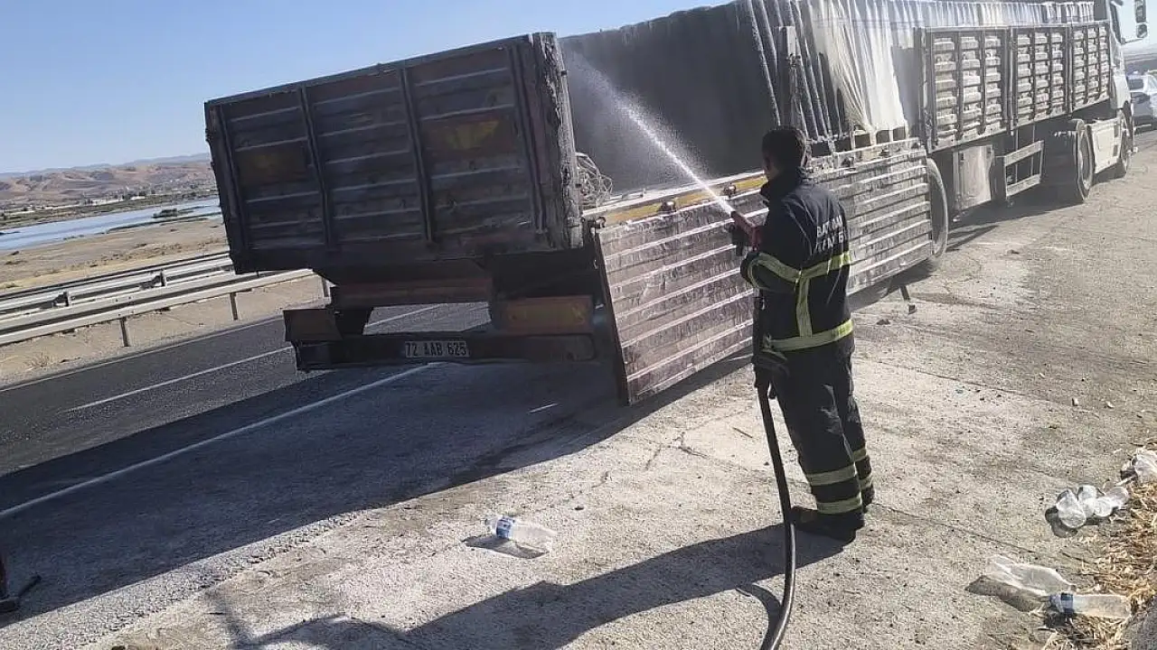 Olay, Diyarbakır yolu Batman girişinde meydana geldi.Edinilen bilgilere göre, seyir halindeki tırın dorsesinden dumanların yükseldiğini fark eden sürücü, aracı hemen yol kenarına çekerek durdurdu.