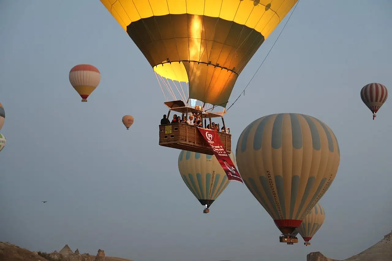 Sıcak hava balonları, Türk bayrağı ve şehit Ömer Halisdemir posteri ile havalandı
