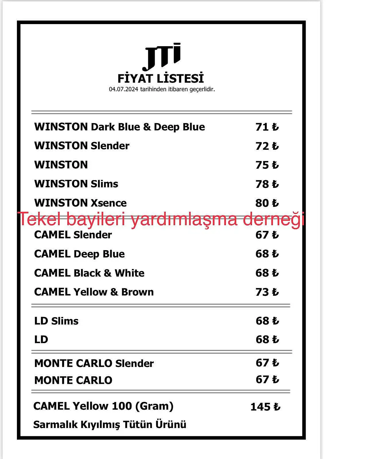 Tekel Bayileri Yardımlaşma Derneği (TBYD) Başkanı Erol Dündar, sosyal medya hesabından yaptığı paylaşımlar JTI grubu sigaralara zam geldiğini duyurdu.9 TL ZAM GELDİ 9 liralık zamlı fiyatlar 4 Temmuzdan itibaren geçerli olacak.