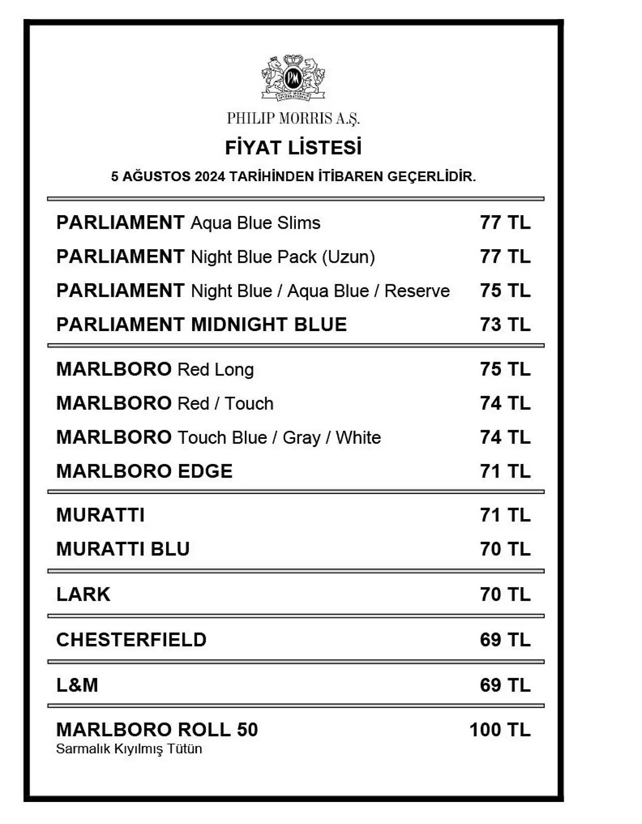 Philip Morris sigara firması ürünlerine zam yaptığını açıkladı.Bugünden itibaren geçerli olacak yeni fiyatlara göre firmanın en ucuz markası 69 liradan.