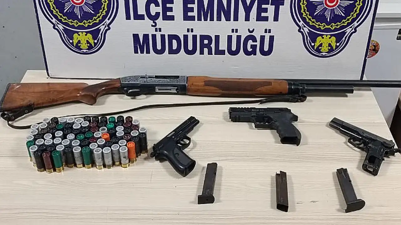 Şahsın ikametinde yapılan aramada 1 adet ruhsatsız tabanca, 1 adet faturasız kurusıkı tabanca, 1 adet ruhsatsız av tüfeği, 21 adet 9x19 mm çapında tabanca mermisi, 69 adet dolu av tüfeği kartuşu ve 61 adet sentetik ecza uyuşturucu hap ele geçirildi. Operasyon kapsamında E.S. ile birlikte ikamette bulunan D.S. de gözaltına alınarak her ikisi hakkında adli işlem başlatıldı.