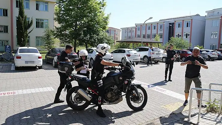 YKS'nin ikinci oturumu olan Alan Yeterlilik Testleri (AYT) için Trakya Üniversitesi Balkan Yerleşkesine giden bir öğrenci, sınav giriş belgesini unuttuğunu fark etti.Bina girişindeki polislerden yardım isteyen öğrenci, Edirne Emniyet Müdürlüğü Motosikletl