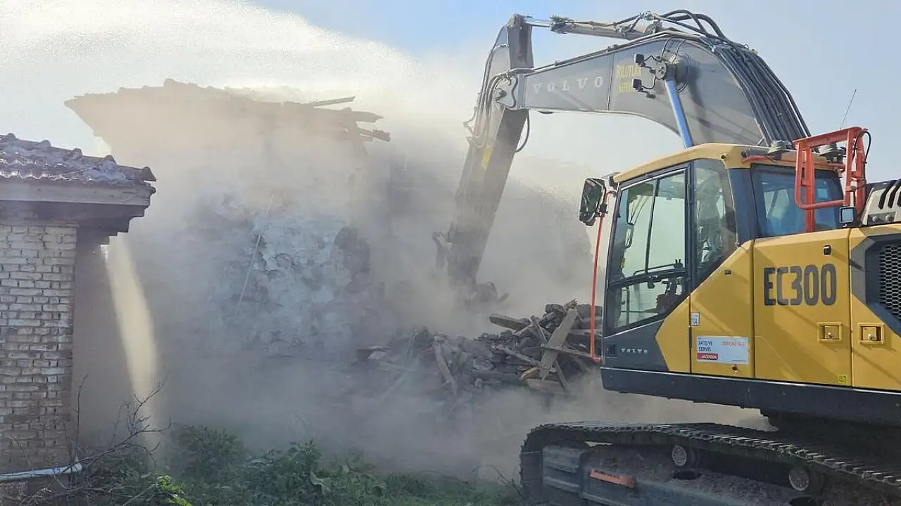 Sındırgı'da hasarlı yapıların yıkımı sürüyor