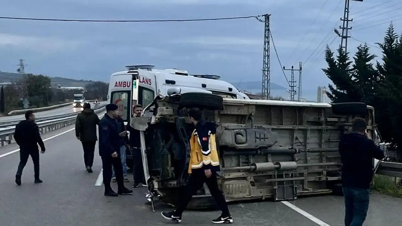 Gerze ilçesinden Sinop Organize Sanayi Bölgesinde faaliyet gösteren bir fabrikaya işçi taşıyan Muhammed Ali Yurbaş idaresindeki 57 S 4056 plakalı minibüs, Taşmanlı mevkisinde refüje çarparak emniyet şeridine devrildi.
