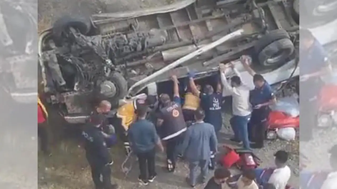Kazada, minibüste bulunan 14 işçi yaralandı. Araçta sıkışan bazı yaralılar, itfaiye ekiplerince çıkarıldı.