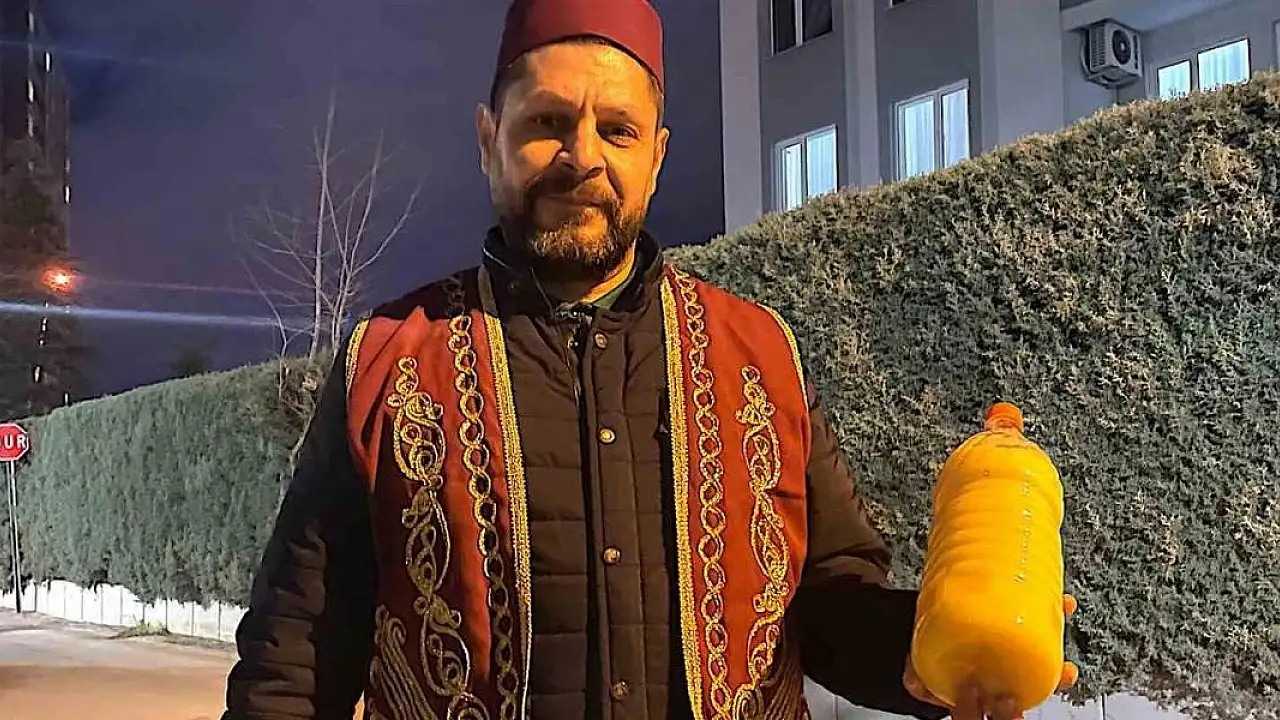 Osmanlı dönemi giysilerinden yeleği ve başında fesi ile nostalji de yaşatan Çelikpençe, ilçede tek olduğu için müşteri sıkıntısı da çekmiyor ve 20-25 litre satarak evine dönüyor.