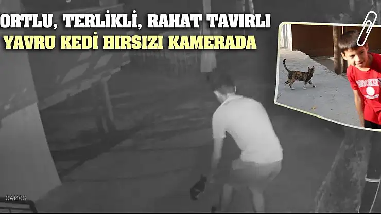 - Şortlu, terlikli, rahat tavırlı yavru kedi hırsızı kamerada