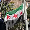 Washington'da 18 Mart 2014'te kapatılan büyükelçilik binasında, Dışişleri Bakanı Esad Hasan Şeybani, Suriye Arap Cumhuriyeti bayrağını göndere çekti.