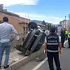 Takla atan araç kaldırımda yürüyen kadın ve çocuğa çarptı