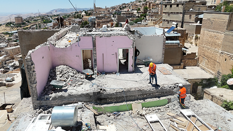 Tarihi kent Mardin'in dokusunu bozan betonarme binaların yıkımı sürüyor