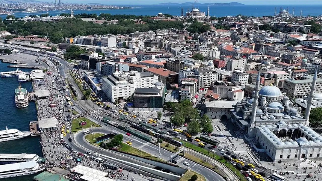 İstanbullular, sıcak havaya rağmen Eminönü Meydanı'nı doldurdu. Deniz yolculuğu yapmak isteyenler, vapur iskeleleri önünde yoğunluğa neden oldu.