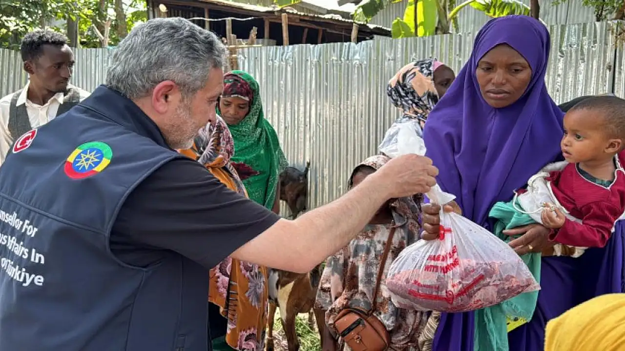 Turan, kesilen kurbanlık hayvanların etlerinin paketlenerek Kurban Bayramı içerisinde dağıtıldığını, Kur'an-ı Kerim ve Türk bayrağından oluşan çeşitli hediyeleri de hayırseverlerin desteğiyle ihtiyaç sahiplerine ulaştırdıklarını belirtti.
