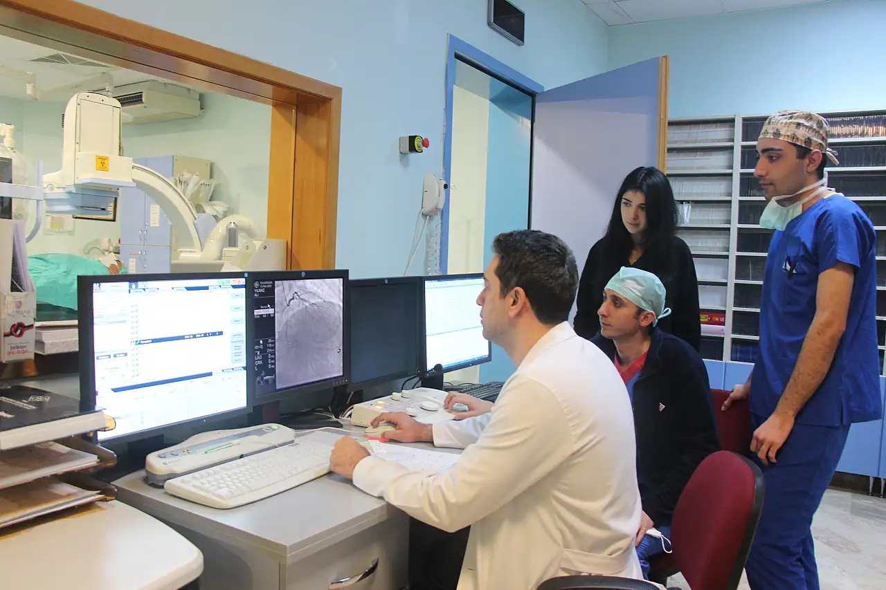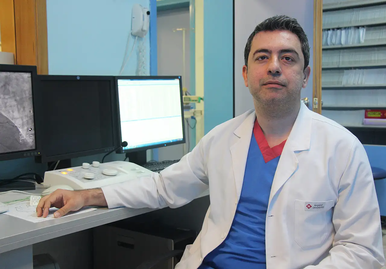 Kardiyoloji Uzmanı Dr. Mesut Mehmet Özdemir, hastanede erişkin ve çocuk kardiyolojisi alanında tüm teşhis ve tedavilerin güncel tıbbi bilgiler ışığında yapıldığını belirtti. Dr. Özdemir; kalp damar, kalp kapak ve ritim bozukluklarının tedavisine yönelik girişimsel işlemlerin yanı sıra, poliklinik şartlarında yapay zeka destekli EKG cihazı ile risk analizi yapabildiklerini ifade etti. Merkezde kalp krizi vakalarına ve acil cerrahi gereken hastalara 7 gün 24 saat müdahale edilebilecek anjiyo ve cerrahi ekipler hazır bulunduğunu ifade etti.