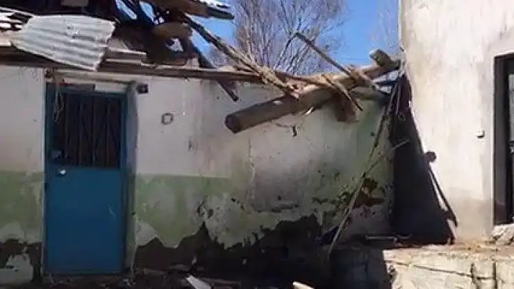 Erzurum'un Tekman ilçesinde etkili olan hortum, çok sayıda binanın çatısının uçmasına neden oldu.
