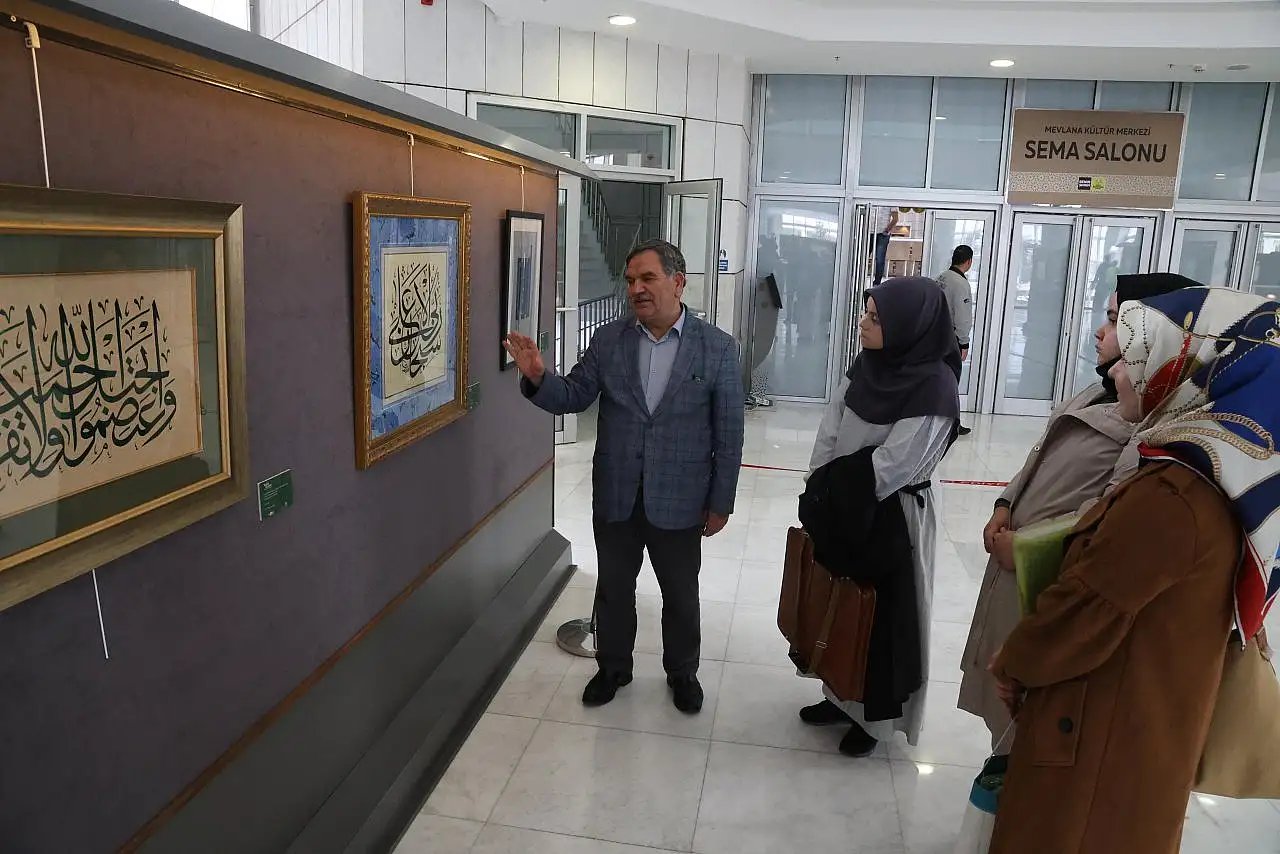 Ayet ve hadislerin geleneksel el sanatıyla yazılmasıyla oluşan Teşrif-i Mevlana Hat Sergisi’nde 42 eser yer alıyor.