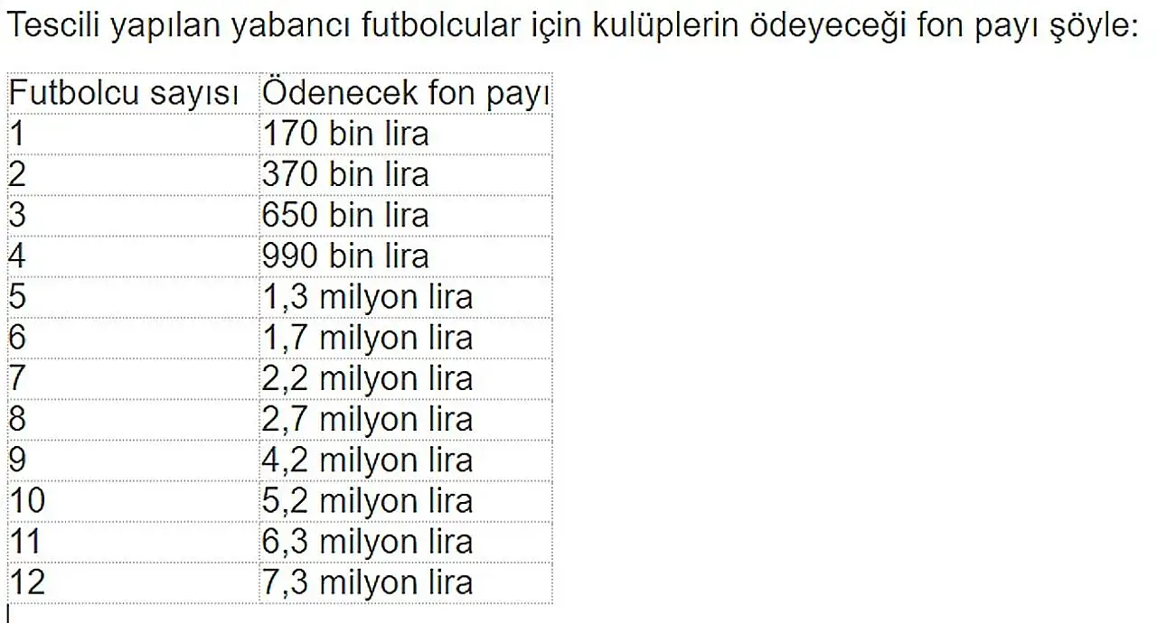 Türkiye Futbol Federasyonu (TFF), Süper Lig'de 2024-2025 sezonunda yabancı futbolcu tescillerinden alınacak fon bedellerini duyurdu.