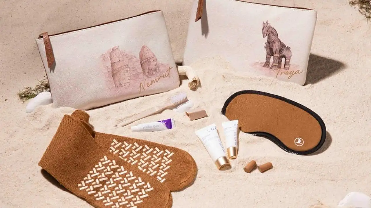 Business kabinde seyahat süresi 5-8 saat aralığındaki uçuşlarda servis edilmeye başlayan kitlere ek olarak, serinin farklı versiyonlardaki çalışmaları ocak ortası itibariyle 8 saat üzeri uçuşlarda ekonomi sınıfı kabinlerde sunulmaya başlayacak. Özel koleksiyon, UNESCO Türkiye Milli Komisyonu iş birliğiyle geliştirilmiş olup, Türk Hava Yolları’nın misafirlerine yalnızca konforlu bir uçuş sunmakla kalmayarak, aynı zamanda Türkiye’nin tarihi ve kültürel değerlerini dünya sahnesine taşımayı hedefleyen vizyonunun önemli bir parçası olarak nitelendiriliyor. Her bir set, Anadolu’nun binlerce yıllık tarihini ve sanatsal birikimini modern bir tasarım diliyle buluşturarak unutulmaz bir seyahat hatırası olarak sunulacak. Geleneksel Türk sanatlarının modern bir yorumu olan setlerin içerisinde lüks parfüm markası Ex Nihilo tarafından geliştirilen el ve vücut losyonu ile dudak balmı da yer alıyor. Ayrıca, set içerisinde bulunan çorap, göz bandı, diş fırçası gibi ürünlerde kullanılan malzemelerin yüzde 80’i geri dönüştürülmüş materyallerden ve biyolojik olarak parçalanabilen mısır nişastası gibi sürdürülebilir seçeneklerden oluşmakta.