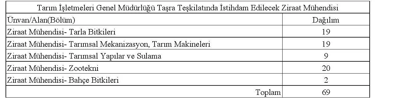 Kurumun konuya ilişkin ilanı Resmi Gazete'de yayımlandı.TİGEM, taşra teşkilatlarında bulunan İşletme Müdürlüklerinin personel ihtiyacının karşılanması amacıyla 399 sayılı Kanun Hükmünde Kararnameye tabi sözleşmeli personel istihdamı yapılacak.