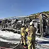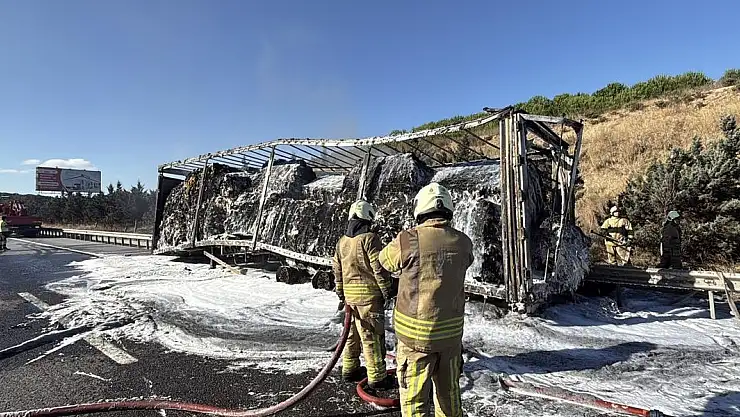 Yangın, saat 15.30 sıralarında Kuzey Marmara Otoyolu Uskumruköy mevkiinde seyir halinde olan TIR'ın dorsesinde çıktı.