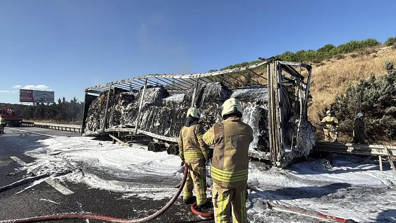 Yangın, saat 15.30 sıralarında Kuzey Marmara Otoyolu Uskumruköy mevkiinde seyir halinde olan TIR'ın dorsesinde çıktı. Edinilen bilgiye göre, 59 AJL 460 plakalı TIR'ın lastiklerinden çıkan kıvılcım, kağıt yüklü dorseye sıçradı. Dorseden dumanların yükseldiğini gören TIR şoförü aracını emniyet şeridinde durdurup çekici ile dorseyi ayırdı. Seyir halindeki diğer sürücülerin ihbarı üzerine olay yerine itfaiye, sağlık ve otoyol polisi ekibi sevk edildi. Ekipler tarafından otoyolun İstanbul Havalimanı-Edirne istikametinde iki şeridi trafiğe kapatılırken itfaiye ekipleri yangını kısa sürede söndürdü. Soğutma çalışmalarının ardından dorsenin kaldırılmasıyla trafiğe kapatılan şeritler açıldı. Ölen ya da yaralanan kimsenin olmadığı yangında küle dönen dorsenin alev alev yandığı anlar cep telefonu kameralarıyla kaydedildi.