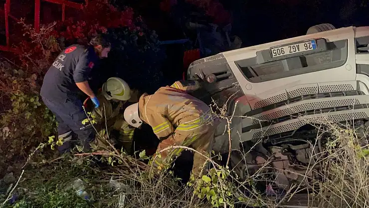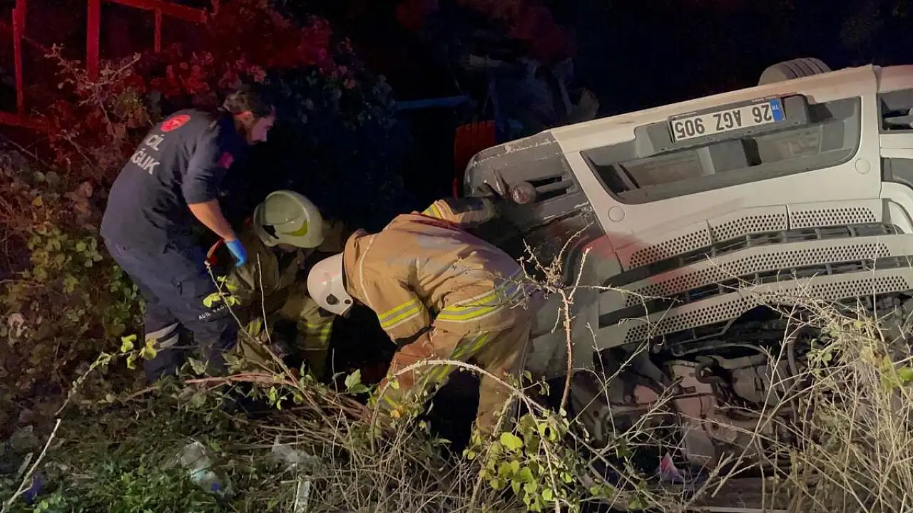 TIR şarampole devrildi: 1 ölü, 1 yaralı