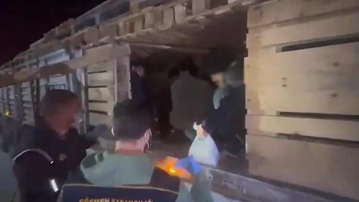 Ekiplerce il merkezinde durdurulan ahşap palet yüklü tırın dorsesindeki gizli bölmede 42 düzensiz göçmen yakalandı, göçmen kaçakçılığı yapan 2 şüpheli gözaltına alındı.