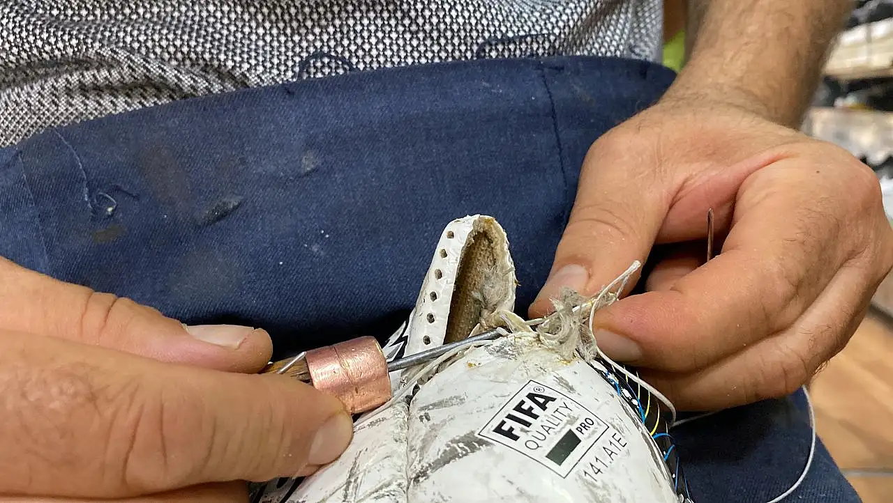 Patlayan bir topun dikilme aşamalarını anlatan Özden, “Toplar patladığı zaman bize getiriliyor. Biz de ilk olarak havasını indiriyoruz. Belirli bir yerini açıyoruz. Sonrasında iç lastikleri çıkartılıyor. Patlak neresiyse buluyoruz. Orayı güzelce yapıştırıyoruz. Daha sonra da gene aynı şekilde dikiyoruz. Yaptığımız iş hiç belli olmaz. Voleybol, basketbol, futbol toplarının hepsinin de tamiri olur. Zaman zaman güzel hatıralarla karşılaşıyoruz. Konya'da bu işi yapan yok denilecek kadar az. Emanet bir top alıyor, o da patlıyor. Burada çok geziniyor, yapacak bir yer bulamayınca ya yenisini alacak ya da parasını verecek. Biz tamir ediyoruz, orijinal şekilde veriyoruz. Çocuk ya da baba sevinerek alıp gidiyor” şeklinde konuştu.
