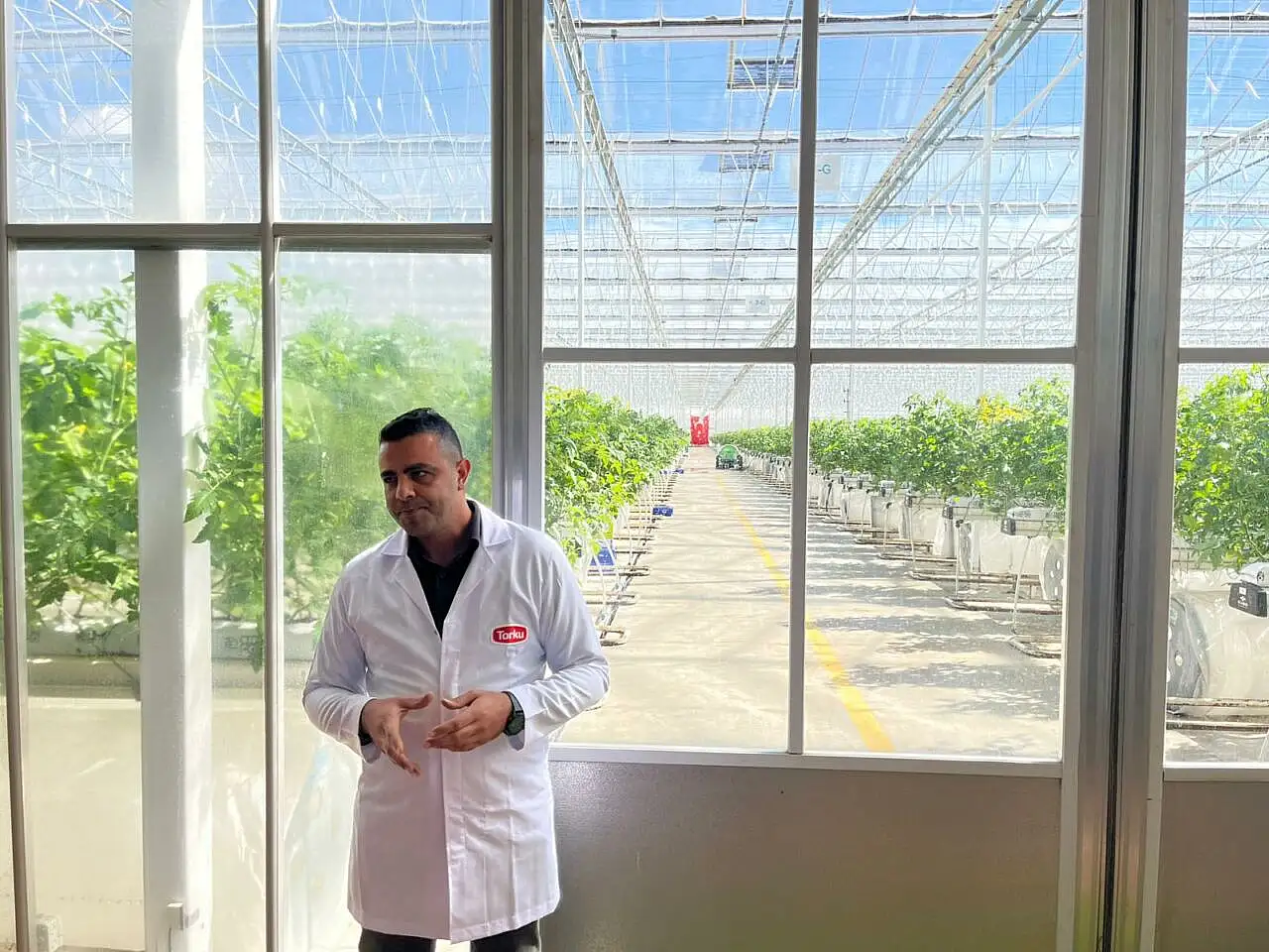 Torku Ultra Klima Domates Sera Tesisi Müdürü Oğuz Gümüş yaptığı bilgilendirmede; “Toplam 40 bin metrekare alandan oluşan tesiste 36,5 dekarda üretim yapılıyor. Zararlı ve hastalık mücadelesinde IPM yöntemleri kullanlıyor. Dünyada kullanılan bi sistem. Global GAP olarak yine dünyada bilenen iyi tarım uygulamaları da tesiste uygulanıyor.12 ayın 10 ayında üretim yapılıyor. Kışlık ve yazlık olarak üretimler değişiyor. Topraksız tarım ile Hindistan cevizi kabuğundan üretim gerçekleştiriliyor. İlaçsız, ve doğal üretim. Atık sıcak su dolaşıyor ve ısınma maliyetini minimuma düşürüyor. Isıtma olduğu kadar soğutma da var. Salkım domates üretimi yapılıyor. Yazlık dekar başı 75 tonla dünya rekoru kırıldı. Hedef dekar başı 100 tona çıkartmak.” dedi.