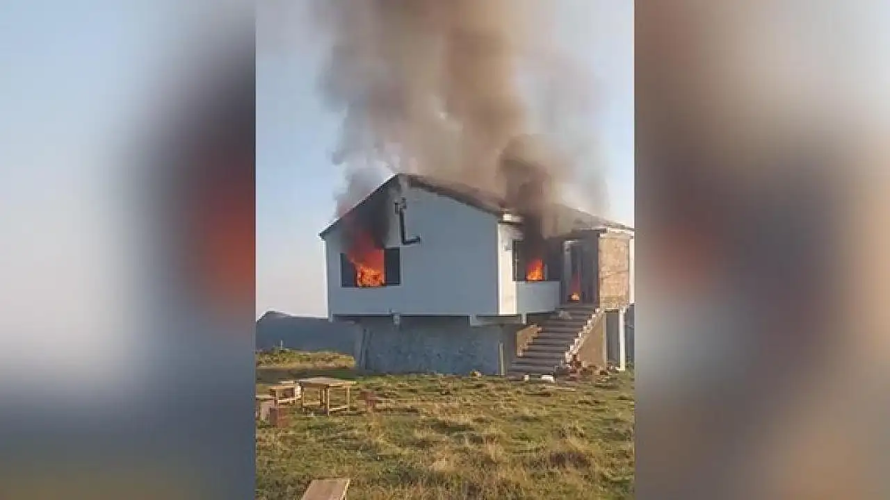 Haçovit Yaylası'nda Arif A'ya ait evde henüz belirlenemeyen nedenle yangın çıktı.