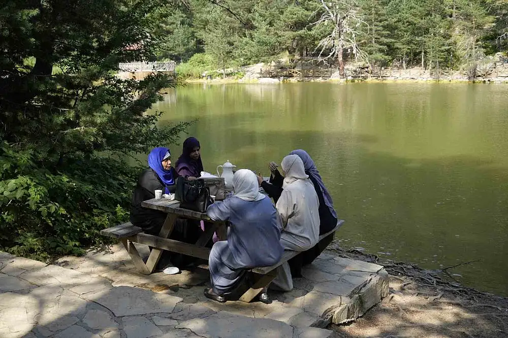 Tropikal sıcakların etkili olduğu Gümüşhane'de vatandaşlar serinlemek için 2 bin metre rakımdaki Limni Gölü Tabiat Parkı'na akın etti.
