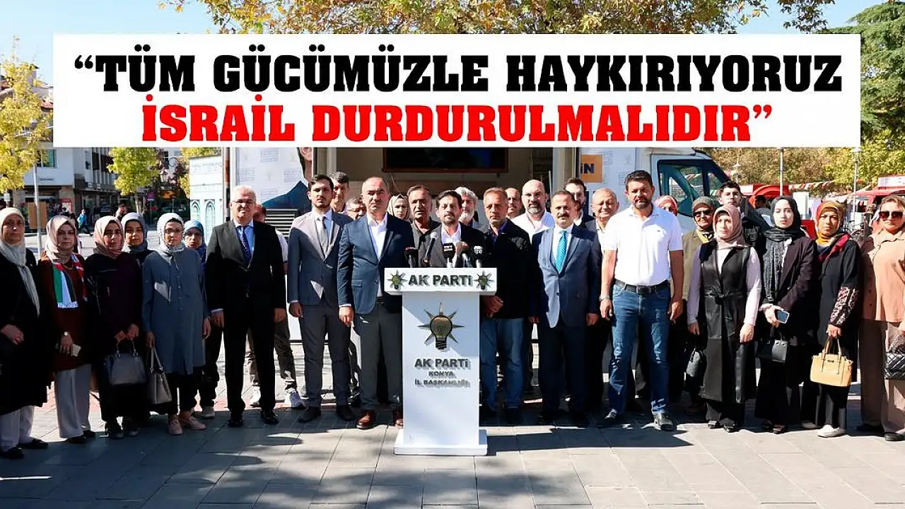 İsrail'in 7 Ekim 2023 tarihi ve sonrasında başta Gazze olmak üzere gerçekleştirdiği insan hakları ihlallerinin ve katliamlarının unutulmamasını sağlamak ile katledilen masumları anmak amacıyla 81 ilde eş zamanlı basın açıklaması gerçekleştirildi. İsrail'in Filistin'e düzenlendiği soykırımın 1. yılında Konya'da düzenlenen basın açıklamasında konuşan AK Parti Konya İl Başkan Yardımcısı, İnsan Hakları Başkanı Ali Deresoy, “Bugün, İsrail'in Filistin'e yönelik başlattığı insanlık dışı saldırının birinci yılında bir araya gelmiş bulunmaktayız. Bu vesileyle, Filistin halkının maruz kaldığı zulmü bir kez daha güçlü bir şekilde kabul etmediğimizi ve Filistin davasını savunmaya devam edeceğimizi tüm dünyaya bir kez daha ilan ediyoruz. İsrail, Gazze Şeridi'ne yönelik başlattığı saldırılar ile Filistinli savunmasız sivilleri hedef almış, uluslararası hukuku hiçe sayarak büyük bir insanlık suçuna imza atmıştır. İşlediği soykırım suçunun üzerini örtmek için de 7 Ekim'i bahane etmektedir. Bu noktada çok önemli bir gerçeğin altını çizmek istiyoruz: 7 Ekim'i, meselenin sanki sıfır noktasıymış gibi ele alan bir yaklaşımı kesinlikle kabul etmiyoruz. 7 Ekim esasında İsrail katliam ve soykırım makinasının hız ve şiddetinin daha da artmasıdır. Bir yılın içinde 17 binden fazla çocuk, 11 binden fazla kadın olmak üzere 42 binden fazla masum Filistinli sivil İsrail'in acımasız ve insanlık dışı saldırılarında şehit düştü” dedi.