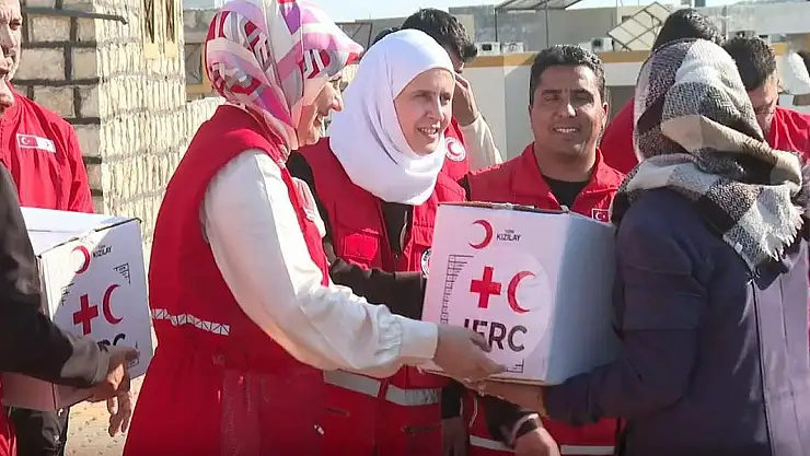 Türk Kızılay ekipleri, İdlib'de yardım kolisi dağıttı