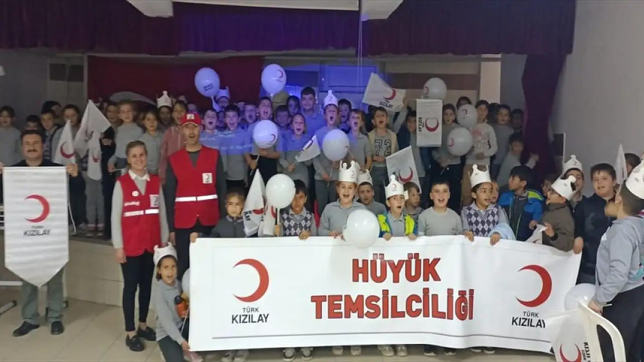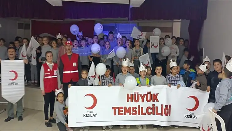 İlçe merkezinde Türk Kızılay Hüyük Temsilciliği tarafından Mevlana İlkokulu'nda düzenlenen etkinlikte, öğrencilere kızılay kültürünü yaygınlaştırmak ve yardımlaşmayı öğrenmiş nesiller yetiştirmek amacıyla bilgi verildi.Kızılay gönüllüleri tarafından 'Nesi