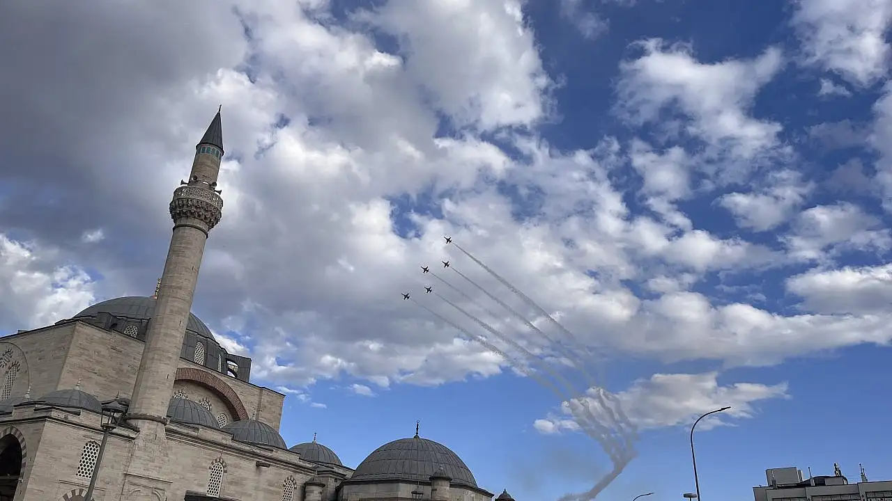 Türk Yıldızları ve Solo Türk'ün Hazreti Mevlana'nın Konya'ya gelişlerinin yıldönümü kapsamında yaptığı gösteri uçuşu 'Teşrif-i Mevlana 796.Karşılama Töreni' Mevlana Meydanı'nda gerçekleştirildi.