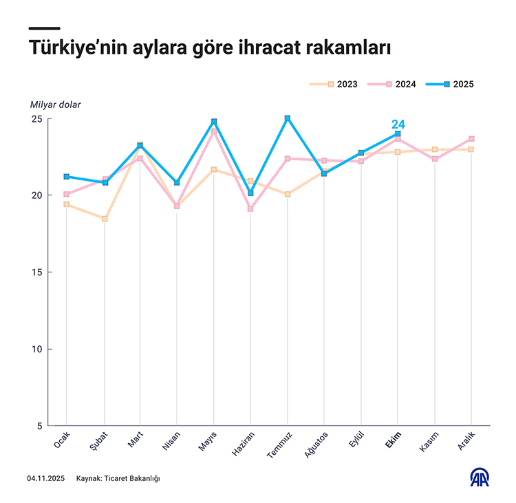 Türkiye'nin ihracatı ekimde yüzde 2 artarak 23 milyar 941 milyon dolara yükseldi