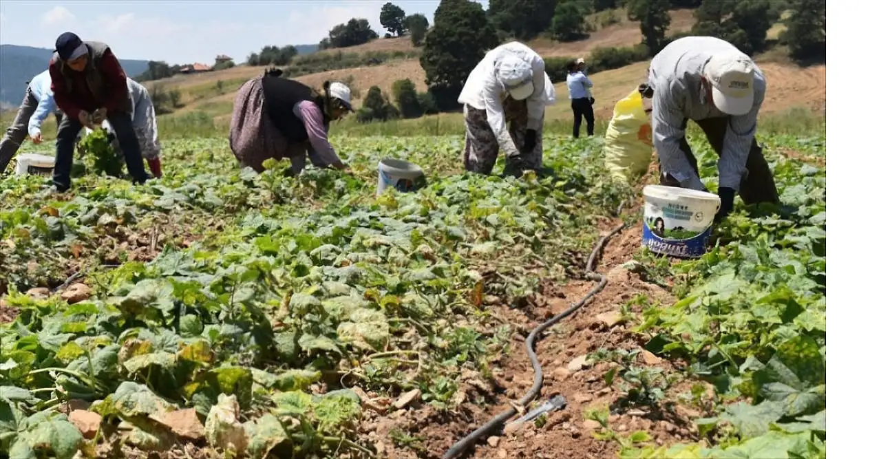 İlçeye bağlı Çamlıca Mahallesi'nde dikimi yapılan turşuluk kornişonun hasadı sürüyor.