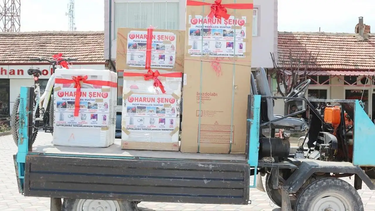 Pazar Mahallesi muhtarı seçilen Harun Şen, 31 Mart Mahalli İdareler Seçimi'nde seçmenlerine verdiği hediye sözlerine istinaden çekiliş yaptı.