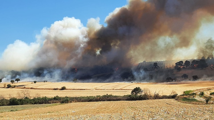 Çanakkale'nin Ezine ilçesine bağlı Akköy ile Güllüce köyleri arasındaki zeytinlikte bilinmeyen nedenle yangın çıktı.Alevler, rüzgarın etkisiyle ormanlık alana sıçradı.