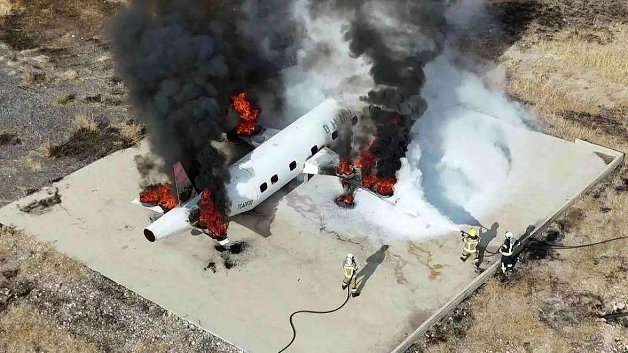 Tatbikat için hazırlanan dev uçak maketi, bir anda ateş topuna döndü. Enkaz bölgesine ise çok sayıda itfaiye ekipleri, Acil Sağlık ekipleri, AFAD ekipleri, UMKE ve havalimanı görevlileri sevk edildi.
