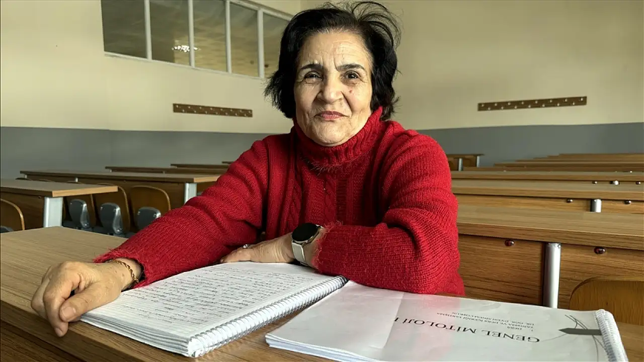 İlerleyen yaşına rağmen torunu yaşındaki öğrencilerle aynı sıraları paylaşan Sönmez, bölümün en renkli simalarından biri oldu.