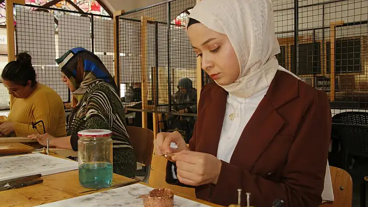 İçişleri Bakanlığı Sivil Toplumla İlişkiler Genel Müdürlüğü'nün desteklediği 'Emeğe Katkı, Haneye Kazanç' projesi kapsamında Bedesten Çarşısı'nda kadınlara yönelik bir kurs açıldı.Bu kursta kadınlar, binlerce yıllık geçmişe sahip Urartu motiflerini modern